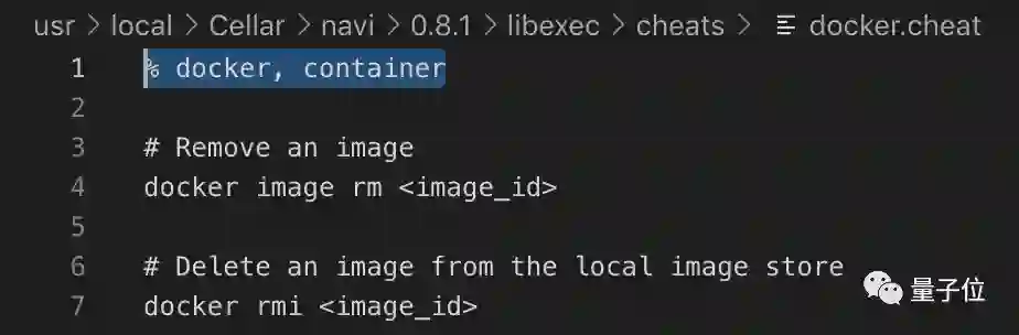 如果你通过Homebrew安装,速查表路径为/usr/local/Cellar/navi/0.8.1/libexec/cheat/。进入这个路径,添加一个后缀名为.cheat的文件。cheat文件的格式如下:
