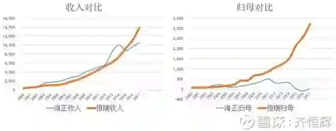 成长性很好,2000年到2017年收入增长28倍,复合增速22%;归母净利增长32倍,复合增速23%;($海正药业(SH600267)$ 的股东们原谅我,确实没有更好的对比对象了,海正现在也有积极的变化)