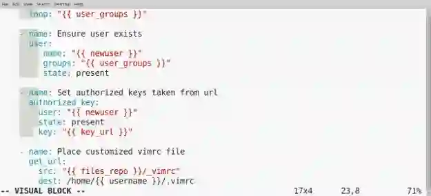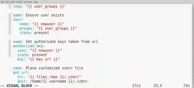可视化块模式对于操作特定的表格数据文件非常有用,但它作为验证 Ansible 剧本文件缩进的工具也很有帮助。