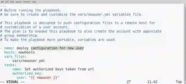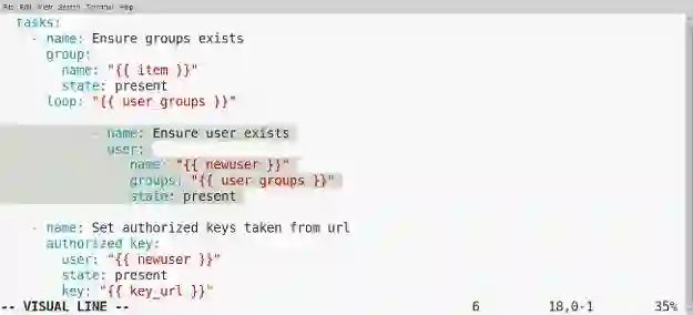 当我使用大多数 Linux 发行版中提供的默认编辑器来教学 Ansible 时,我经常使用 Vim 的可视化模式。它可以让我在屏幕上高亮显示我的操作 —— 我要编辑什么以及我正在做的文本处理任务,以便使我的学生更容易学习。