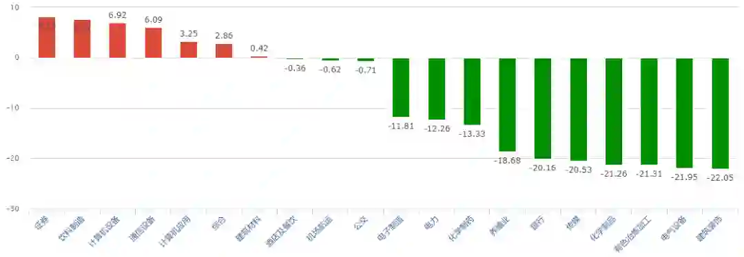 2014年6月-9月中,利率下行、经济预期改善,大部分板块轮动式上涨。但9月中旬之后,经济数据再次变差,投资者担心提估值结束,恰逢三季报披露期,市场从9月中到10月底,小幅调整。