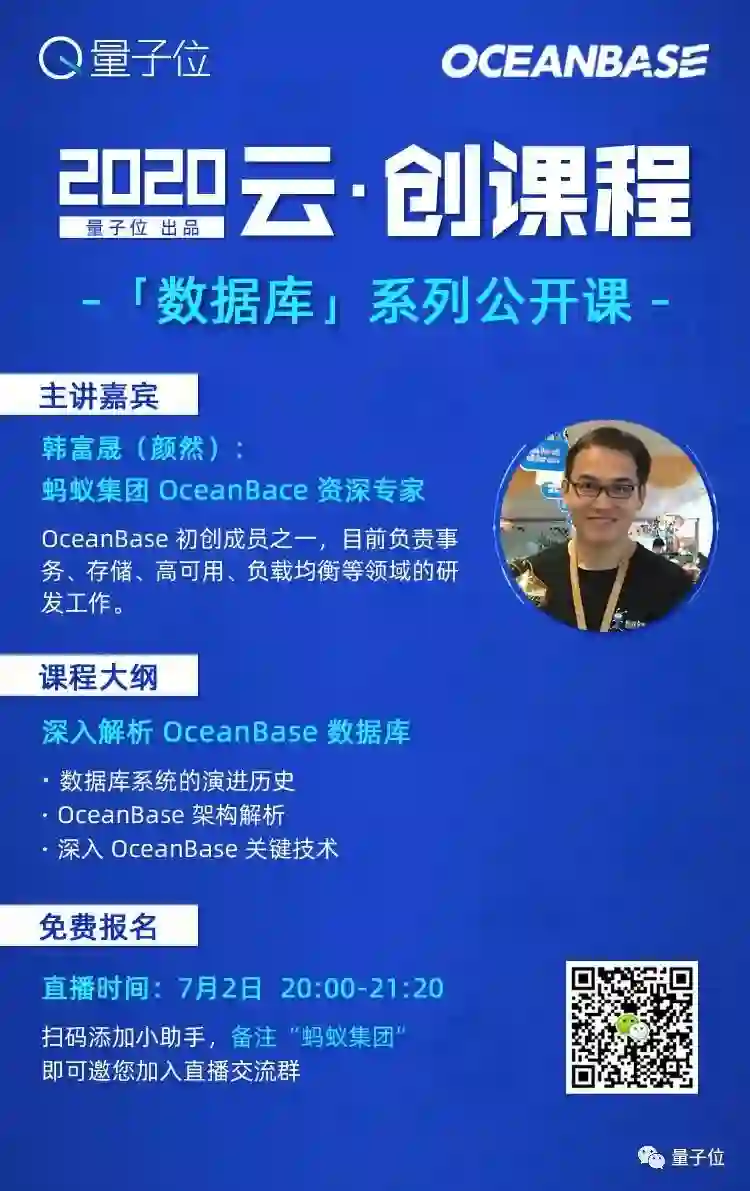 近期,量子位发起了以数据库为主题的免费公开课,邀请来自蚂蚁集团、腾讯云、浪潮等头部企业的数据库技术线负责人,围绕数据库的行业现状、趋势与技术进展等内容,以线上直播的形式为大家带来3期分享。