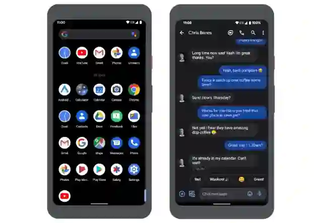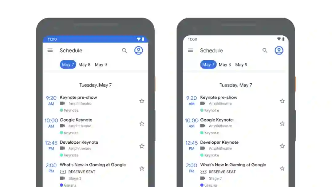 两个 Android 11 中软键盘动画效果的示例: Google Search 应用 (左),Messages (右)