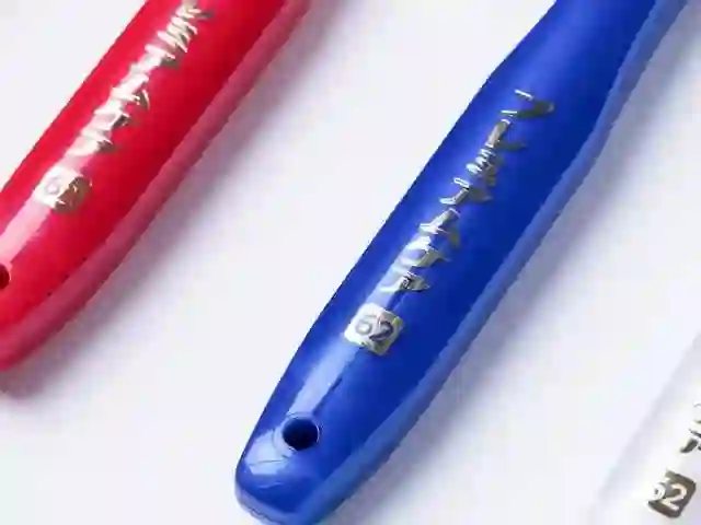 惠百施48孔宽头牙刷有两种刷毛硬度可选,看牙刷柄上的数字可辨别。