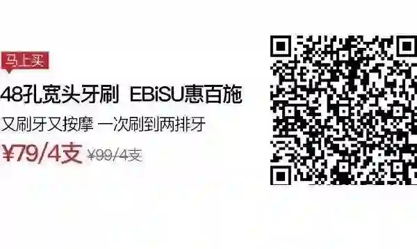惠百施的宽头牙刷,将植毛量提升到48孔,高密度植绒,刷毛更细腻,刷毛与牙齿的接触面一下子扩大了将近一倍,一次能刷到上下两排牙。