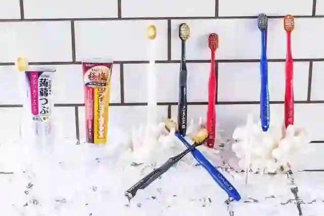 宽头牙刷可以配上惠百施的两款药用牙膏使用: 极盐药用牙膏(右)、蒟蒻美白牙膏(左)。