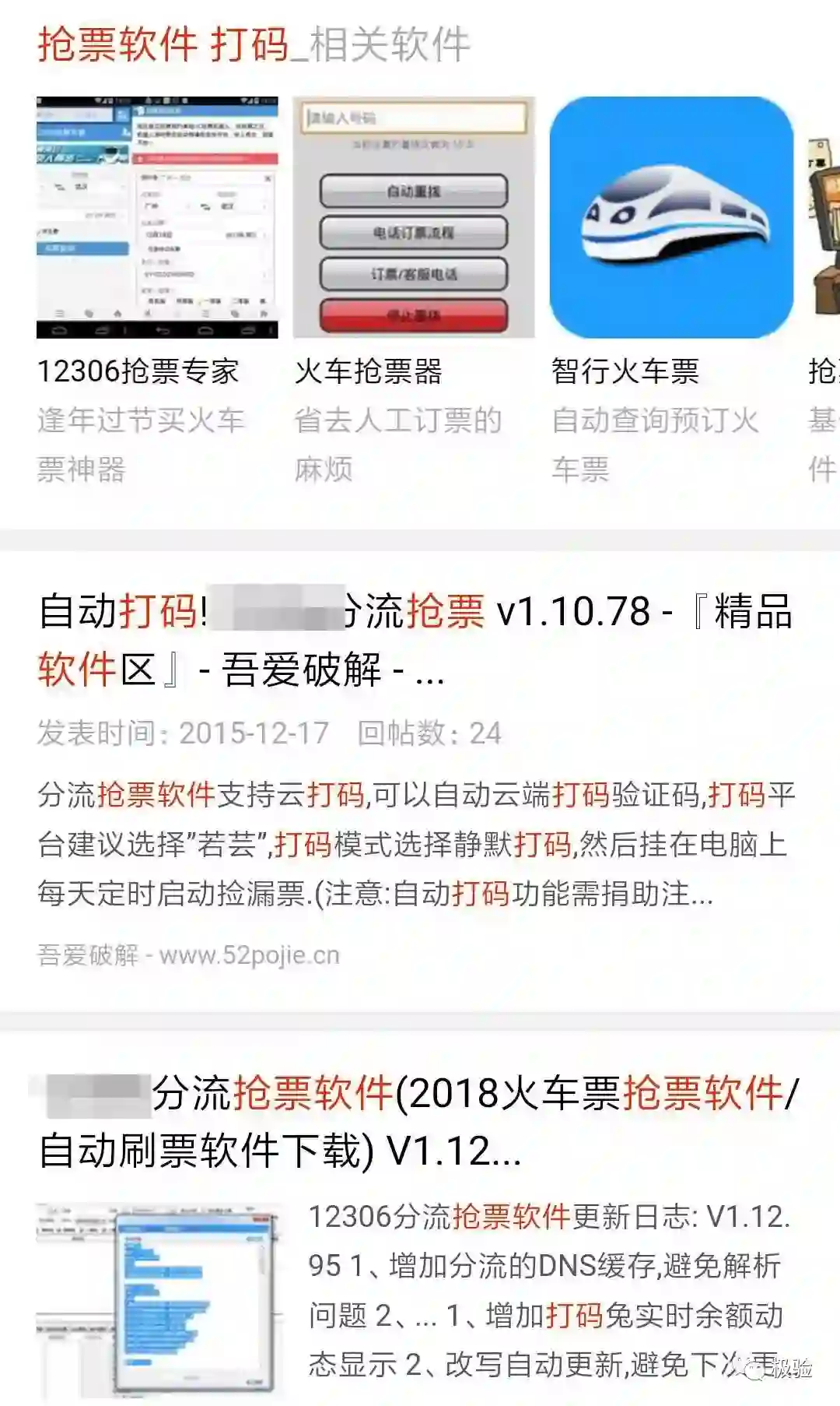 在搜索引擎输入“抢票”、“打码”等相关关键词之后,就出现了非常多的打码软件。