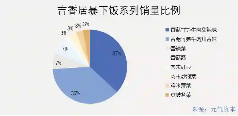 吉香居2018年推出的产品“暴下饭”系列与知名网红IP《暴走漫画》合作,凭借其产品本身过硬的发酵技术和调味水平,目前是天猫超市、拼多多等网购平台综合销量最高的拌饭酱之一。其中最受欢迎的是香菇竹笋牛肉酱(包括甜辣味和川香味)。
