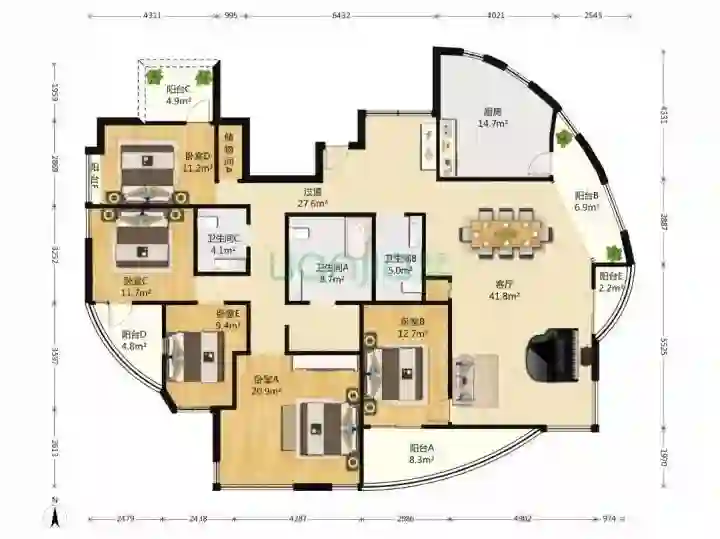 但是大家千万不要被表象蒙骗,打开这个小区的户型图,那就是打开了新世界的大门。