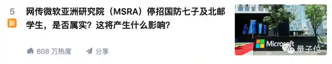 微软亚洲研究院——MSRA,被曝停招国防七子高校及北邮的学生!