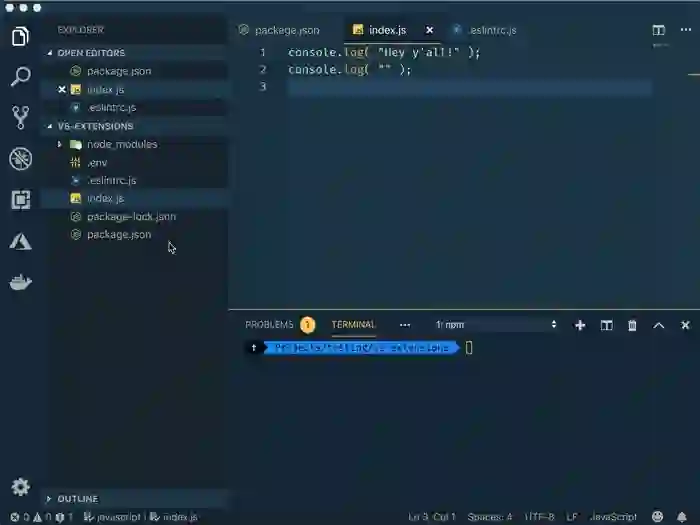 在初始化一个新的Node.js项目文件时,我要做的第一件事就是在终端安装ESLint。