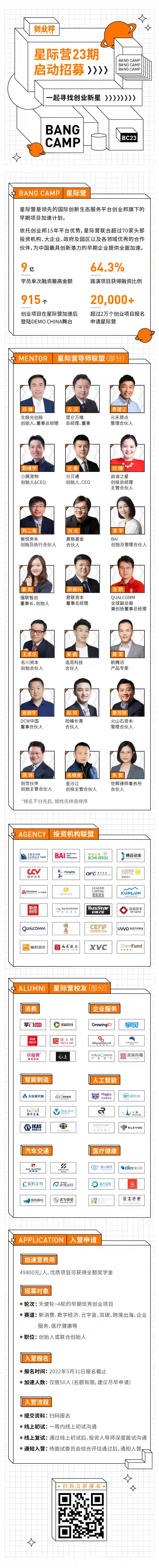 陪伴创业者和初创企业成长,是创业邦星际营未变的初心和宗旨,过往学员项目的优秀表现令我们与有荣焉。如今星际营BC23期再度启航,我们希望能够帮助更多优质的学员项目,助力其加速成长,早日成为闪闪发光的创业新星。