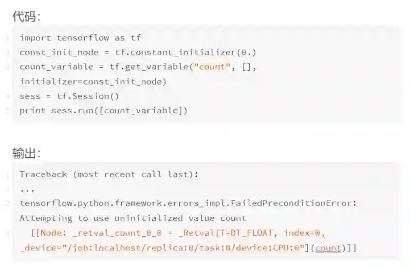问题在于会话和图之间的分隔。我们已经将 get_variable 的 initializer 属性指向 const_init_node,但它只是在图中的节点之间添加了一个新的连接。我们还没有做任何与导致异常有关的事情:与变量节点(保存在会话中,而不是图中)相关联的内存仍然为“null”。我们需要通过会话让 const_init_node 更新变量。