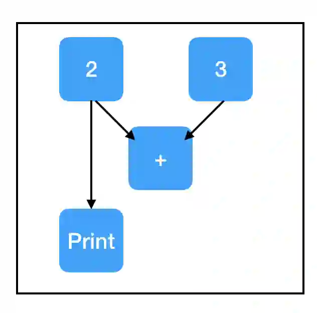 我们来看看如何构建一个示例。下图中,上半部分是我们运行的代码和它的输出,下半部分是结果计算图。
