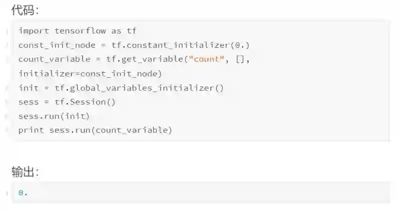 为此,我们添加了另一个特殊节点:init = tf.global_variables_initializer()。与 tf.assign() 类似,这是一个带有副作用的节点。与 tf.assign() 不一样的是,我们实际上并不需要指定它的输入!tf.global_variables_initializer() 将在其创建时查看全局图,自动将依赖关系添加到图中的每个 tf.initializer 上。当我们调用 sess.run(init) 时,它会告诉每个初始化器完成它们的任务,初始化变量,这样在调用 sess.run(count_variable) 时就不会出错。