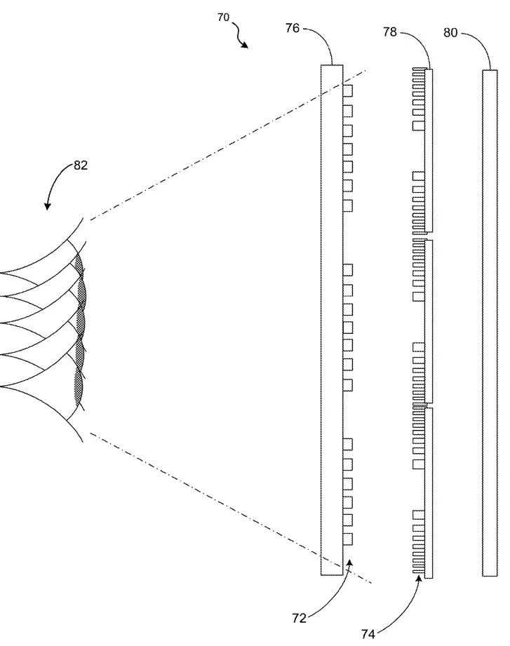 HoloLens这次的专利,提供了三种解决方案,重点是后两种方案中使用的小透镜阵列来达到扩大FOV的目的。通过光源向小透镜阵列的相应小透镜发射光线,小透镜再折射入人眼,来扩大FOV。