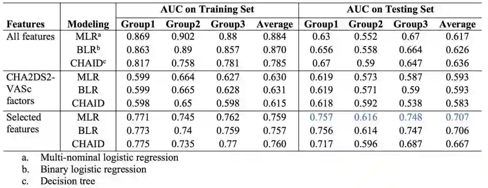 此外,不同组人群在年龄、病情、用药史上呈现出了不同的特征。预测模型共筛选出了 29 个特征,多项逻辑回归模型在测试数据集上呈现出较好的预测结果。