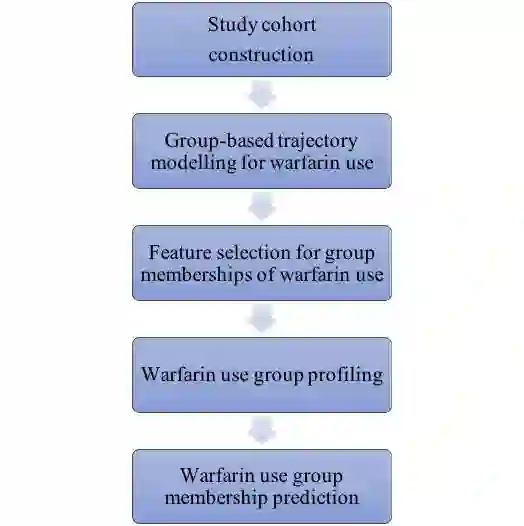房颤病人有很高的发生脑卒中的风险。对于房颤病人,华法林是一种广泛被医生接受的、用来预防脑卒中的长期口服药。然而,房颤病人对华法林的用药在一段时间内呈现什么特征并不是很明确,比如病人是一直吃药,还是先吃药后停药,还是其他更复杂的轨迹曲线特征。