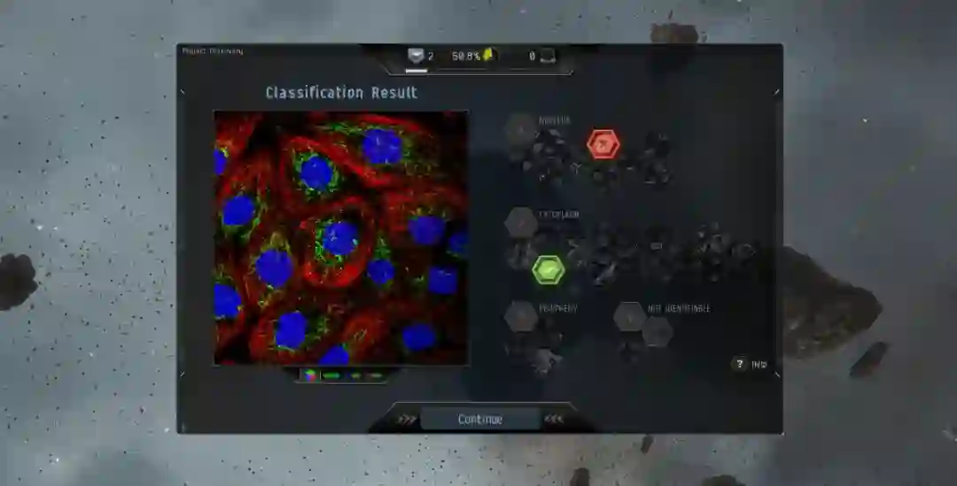 研究人员将人类蛋白质图像的定位分析直接整合到EVE Online中,由此产生名为“Project Discovery”的迷你游戏,然后将玩家的定位与AI系统的定位进行比较,这种AI系统被称为定位细胞注释工具(Loc-CAT)。