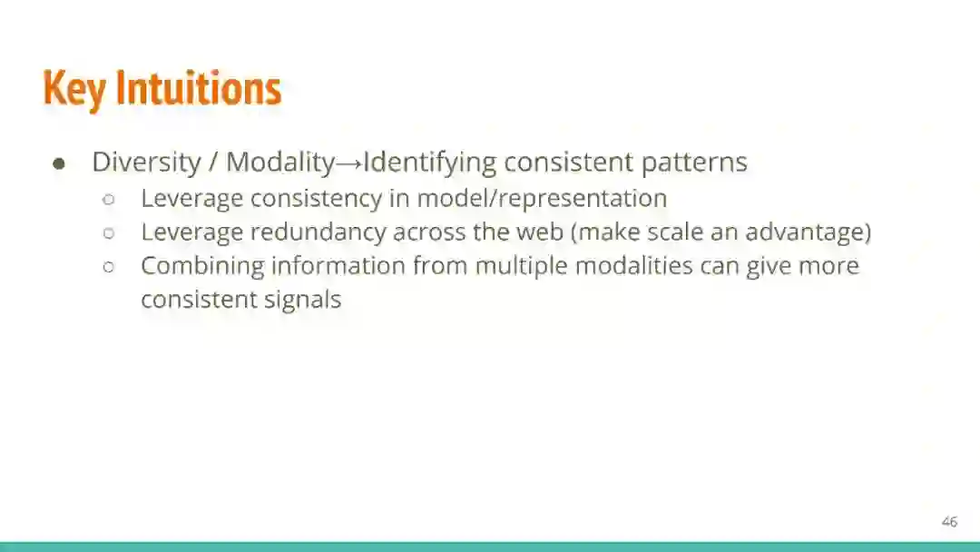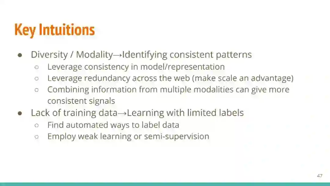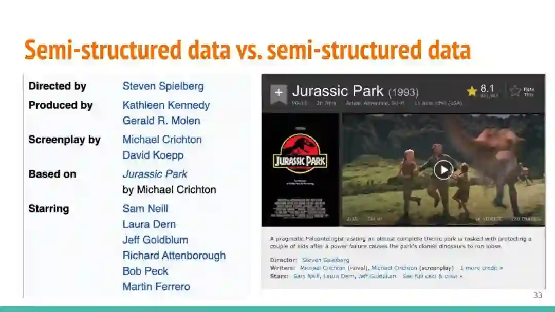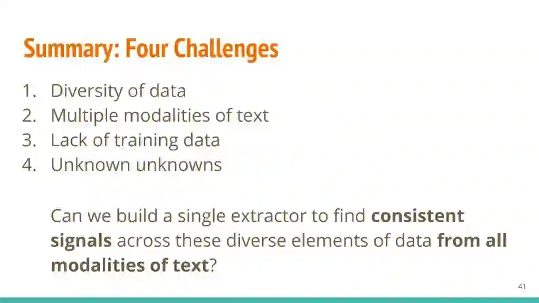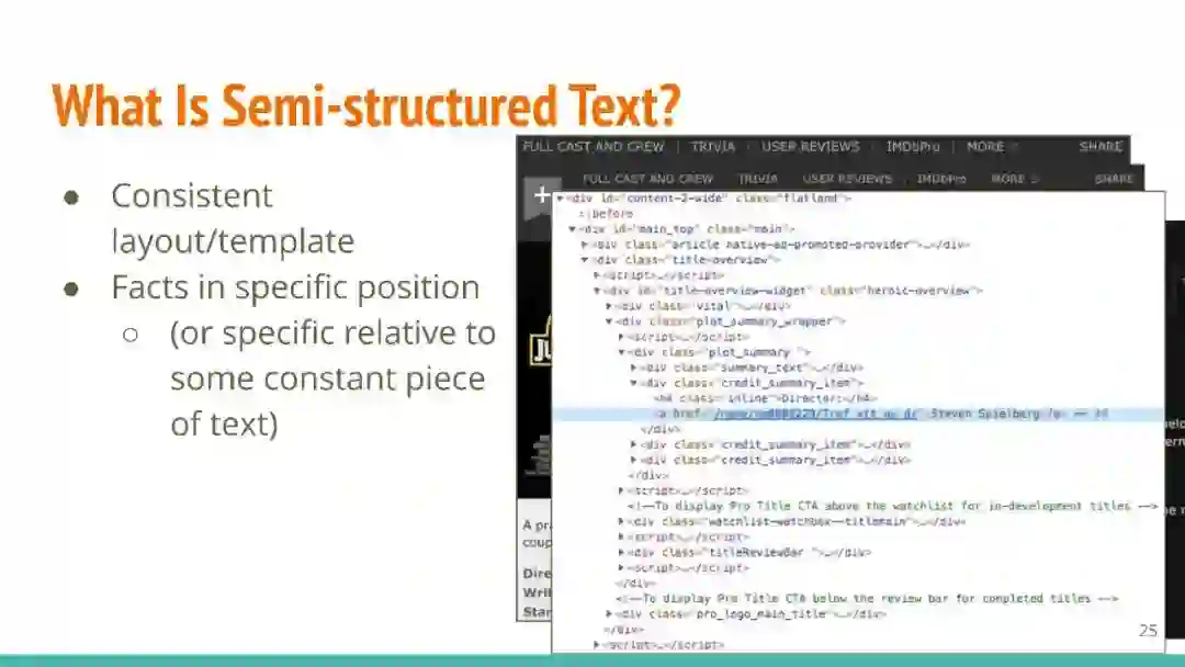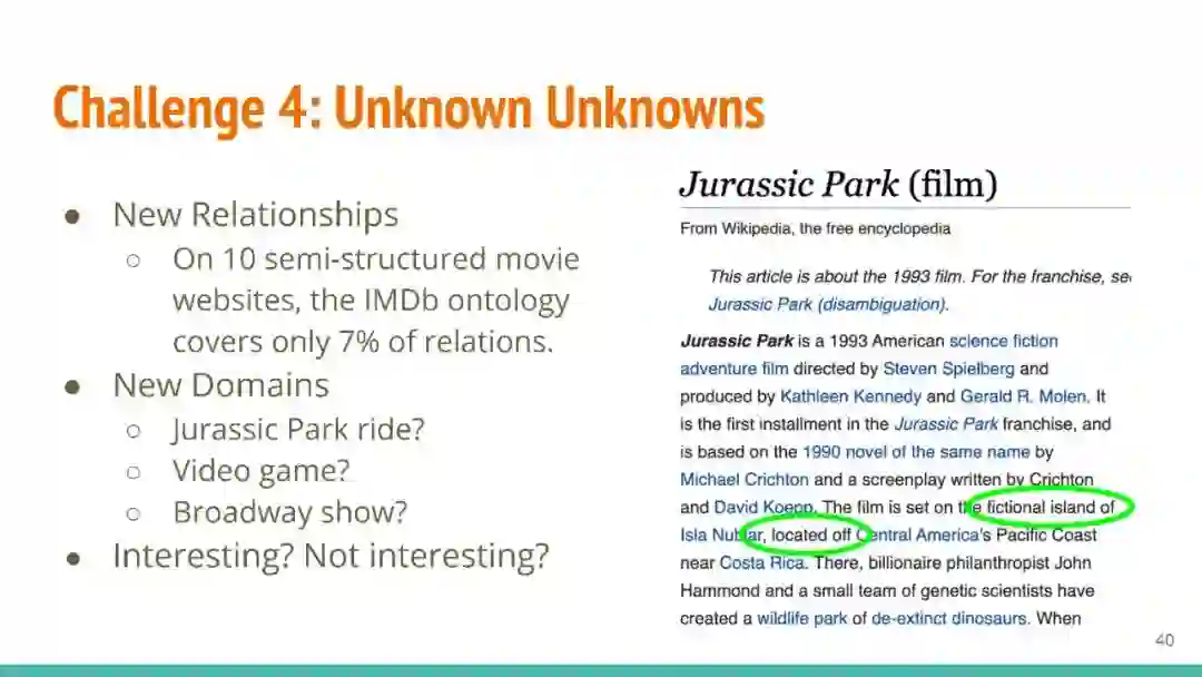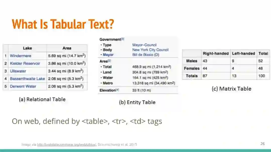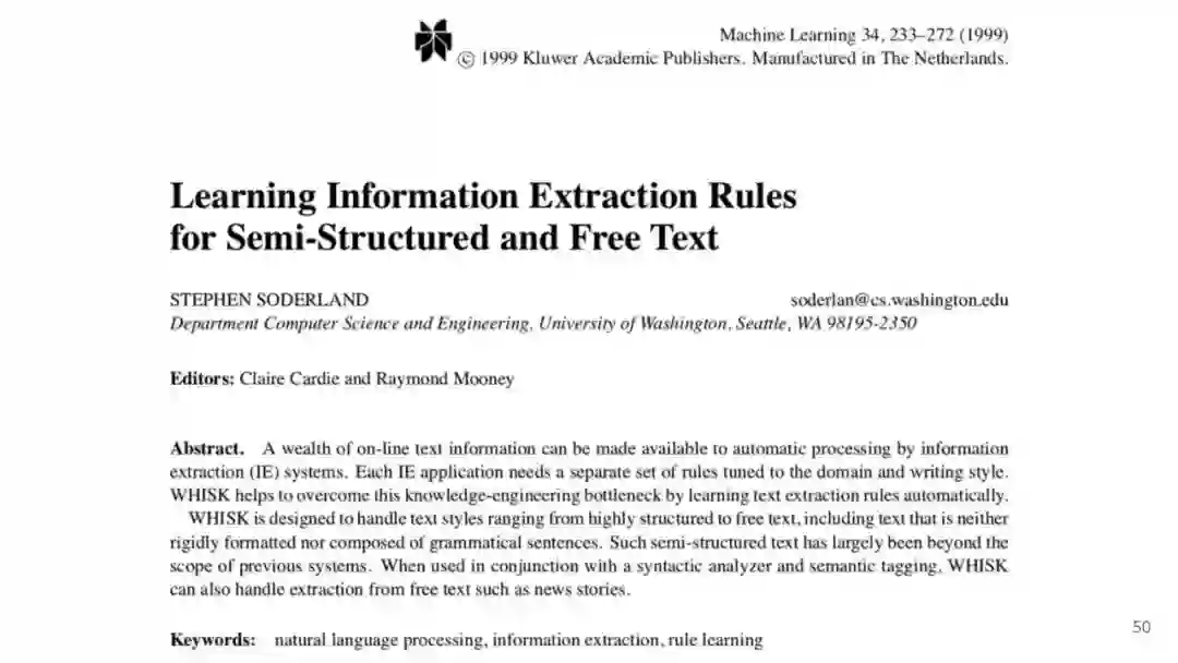万维网以多种形式包含大量的文本信息:非结构化文本、基于模板的半结构化网页(以键-值对和列表的形式呈现数据)和表格。从这些资源中提取信息并将其转换为结构化形式的方法一直是自然语言处理(NLP)、数据挖掘和数据库社区研究的目标。虽然这些研究人员已经很大程度上根据数据的模态将web数据的提取分离到不同的问题中,但他们也面临着类似的问题,比如使用有限的标记数据进行学习,定义(或避免定义)本体,利用先验知识,以及针对web规模的可扩展解决方案。在本教程中,我们将从整体的角度来看待信息抽取,探索挑战中的共性,以及为解决这些不同形式的文本而开发的解决方案。