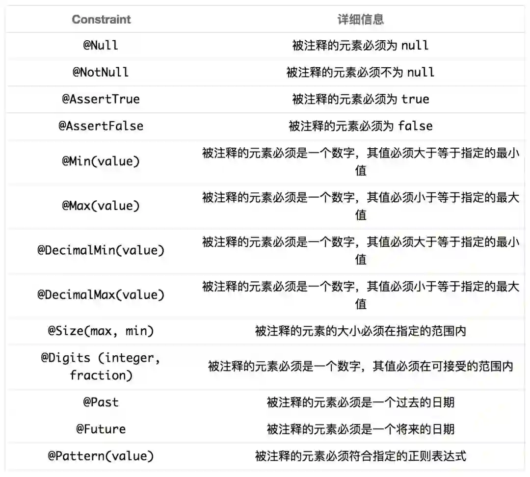 JSR 303只是个规范,并没有具体的实现,目前通常都是才有hibernate-validator进行统一参数校验。