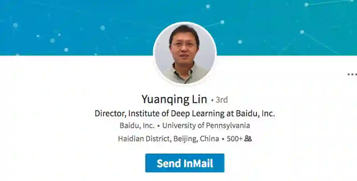 大数据文摘查看发现,林元庆的领英界面还未更新,仍显示他为百度深度学习实验室(IDL)主任。