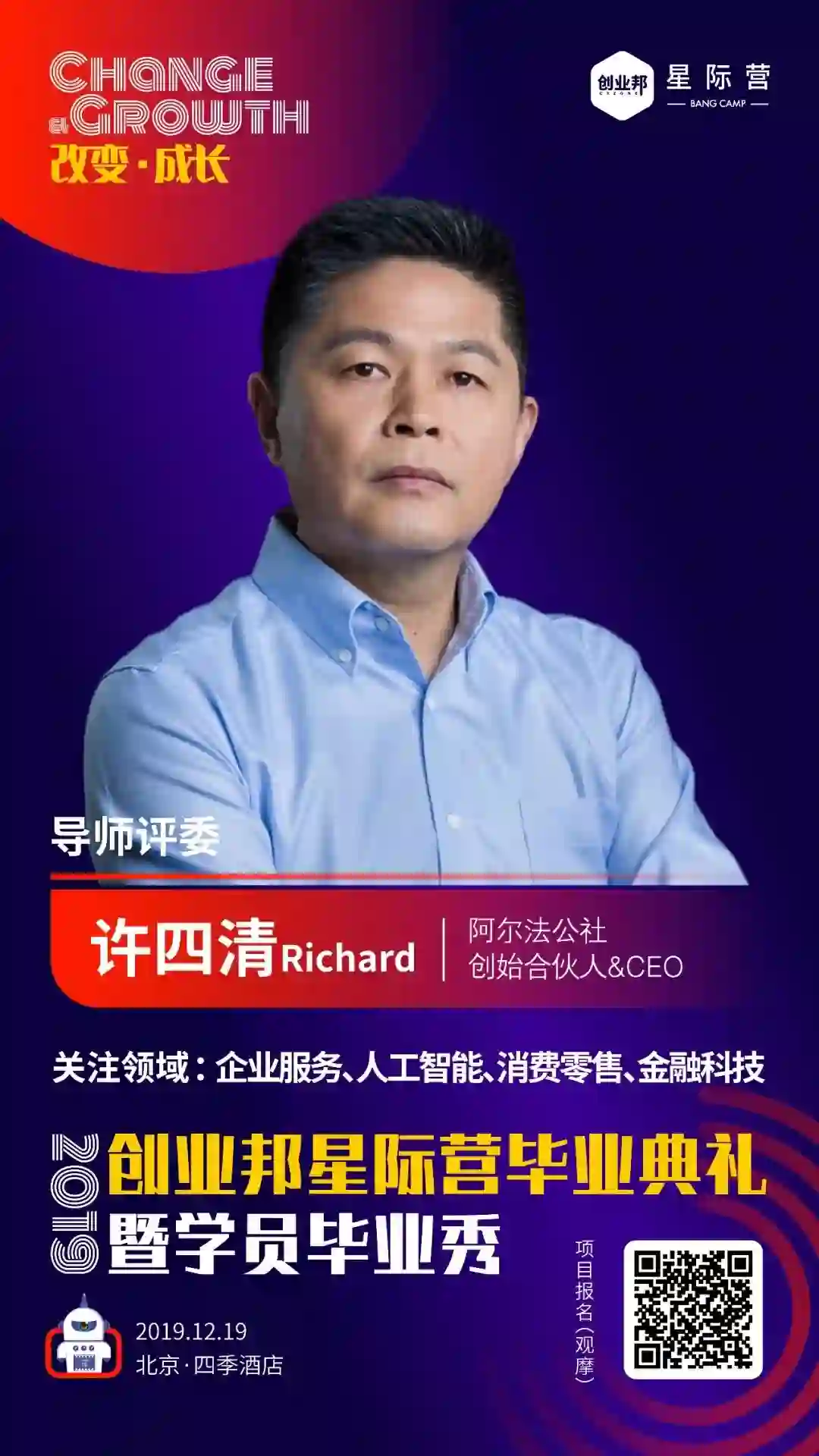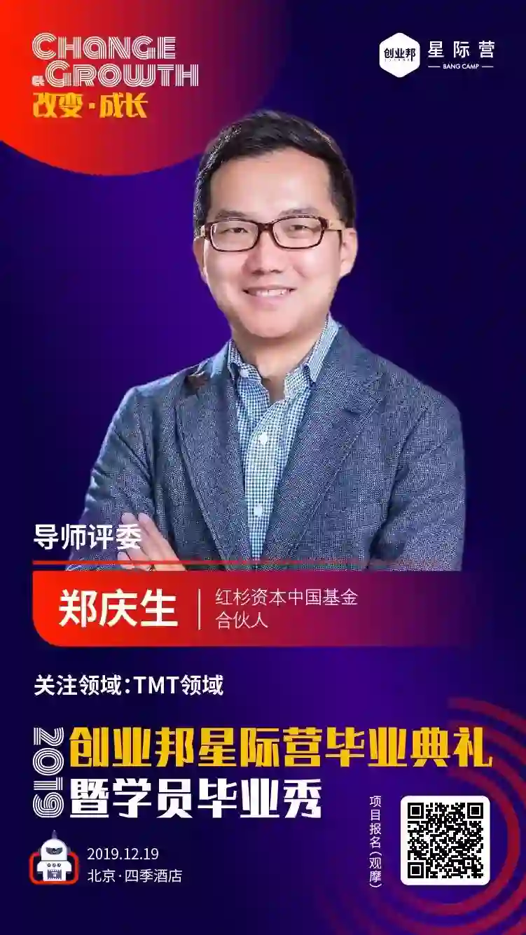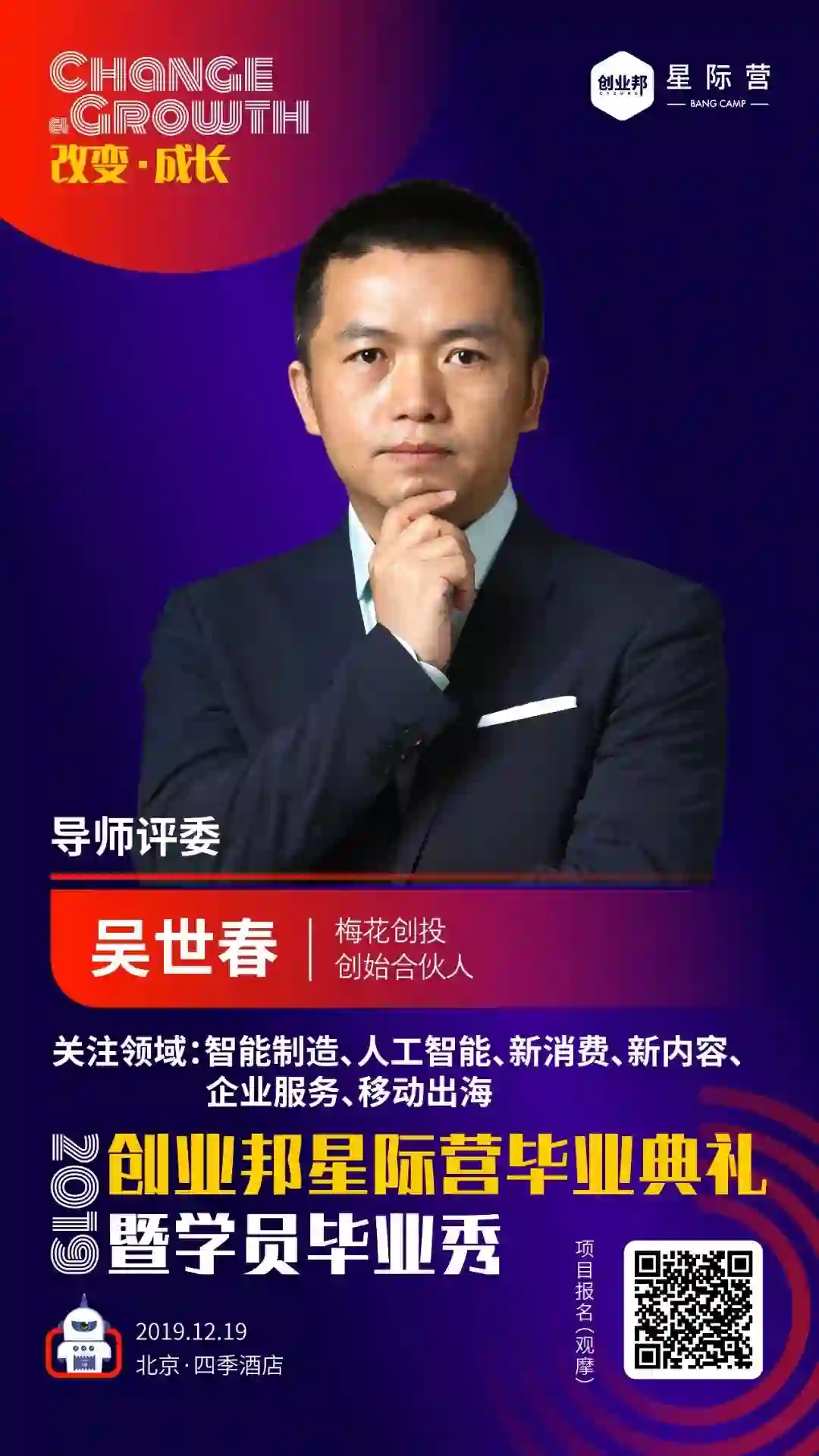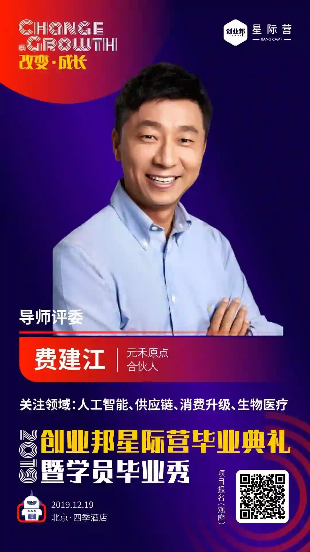 好消息是,现星际营放福利啦!点击原文阅读、或扫文末二维码报名,快速连接2020年创业邦星际加速营,并有机会免费获得创业邦星际营金融科技、智能互连、大消费专场创业者观摩名额,一起扛起2020!