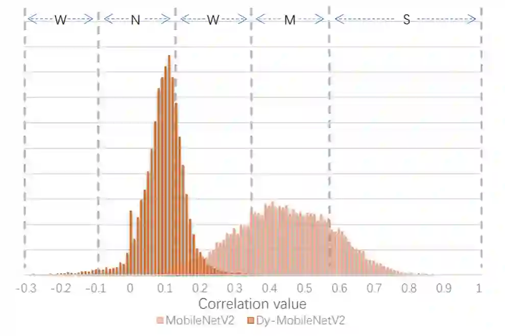 该论文利用了动态卷积来做神经网络的加速。该文章对activation进行了协方差的分析和可视化,从而提出了Coefficient prediction模块和Dynamic generation模块来产生动态卷积。相比于标准卷积,相同的通道数下,动态卷积的性能有明显的提升。