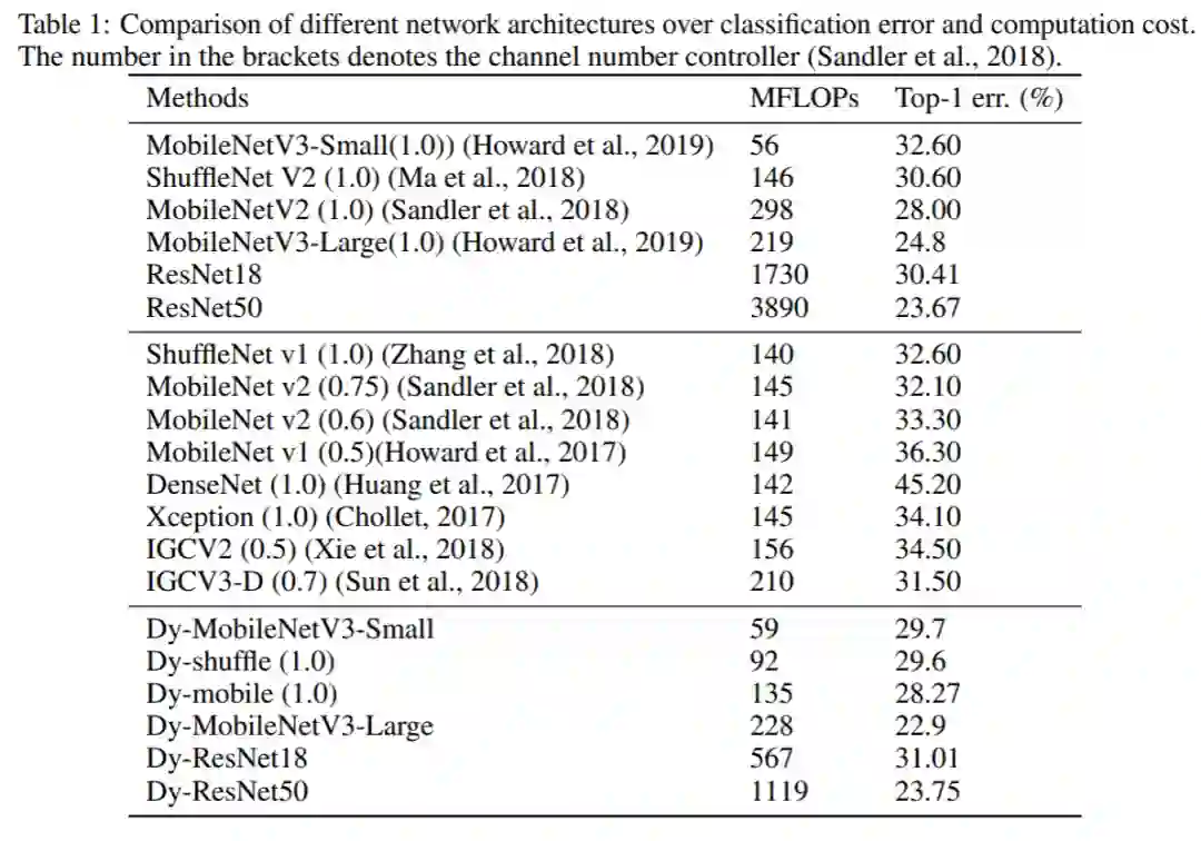 该论文从轻量设计的角度提出了DyNet,能够有效地降低模型的计算量。思路上和CondConv较为接近,在实现上类似于通道注意力机制,另一方面该论文的训练采用了cosine学习率、label smooth等技巧。