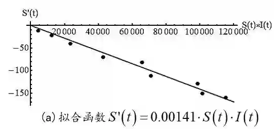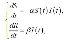 根据(1),S'(t)和S(t)I(t)乘积负相关,R'(t)和I(t)正相关,于是有