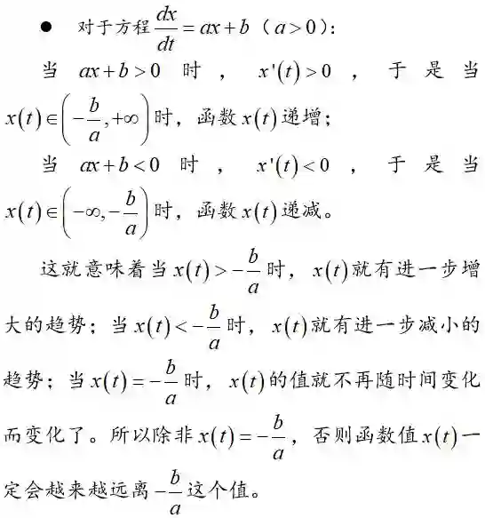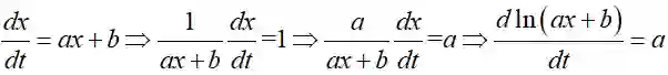 于是 ln(ax+b) 一定是关于时间 t 的线性函数,于是可得