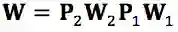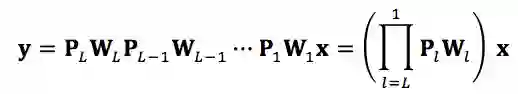 图 1:交替结构稀疏的卷积结构。(图中的实线箭头)是分块稀疏矩阵,对应于分组卷积。P_1和P_2是重排序矩阵(图中的虚线箭头)。所产生的复合卷积核