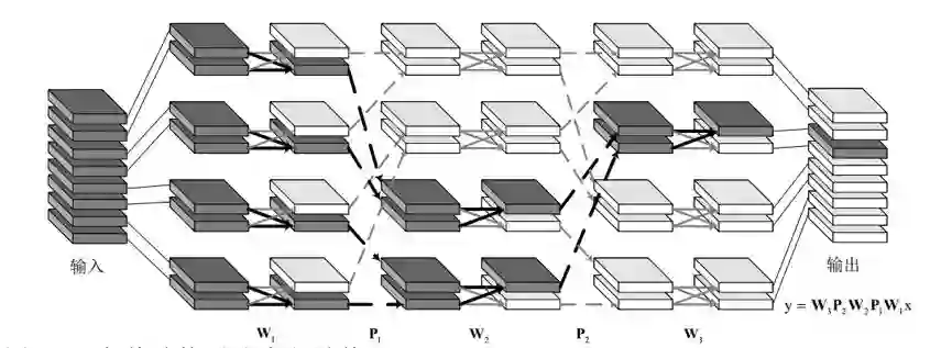 互补条件。交替结构稀疏的卷积的主要思想是用多个分块稀疏的矩阵相乘来构建一个新的卷积核,即由的相乘来构建一个新的卷积核w。引入重排序矩阵