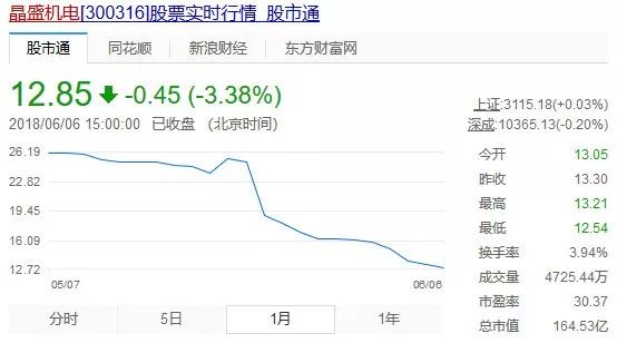 受此影响,近日,光伏股出现暴跌。6月6日,晶盛机电(300316)在互动平台上表示,光伏新政短期对行业有所影响,长期看有利于行业淘汰落后产能,加速平价上网进程。公司目前经营情况正常,尚未发生订单取消或违约情况。第一财经1℃记者注意到,6日收盘后,晶盛机电下跌3.38%,而自6月1日至今,该股累计下跌了近20%。