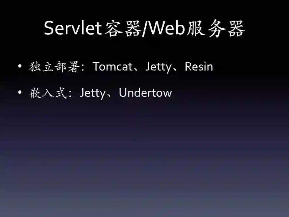 这一类服务器见图片,主要是Tomcat、Resin、Jetty、Undertow。
