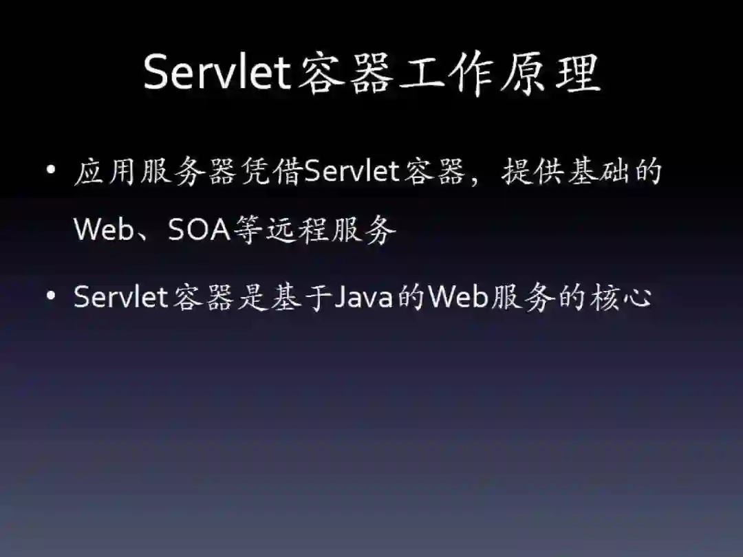应用服务器基于Servlet提供基础的HTTP服务,包括Web服务、SOA,即便是JSP页面,最终也是通过Servlet实现的。因此Servlet容器可以说是Web服务的核心。