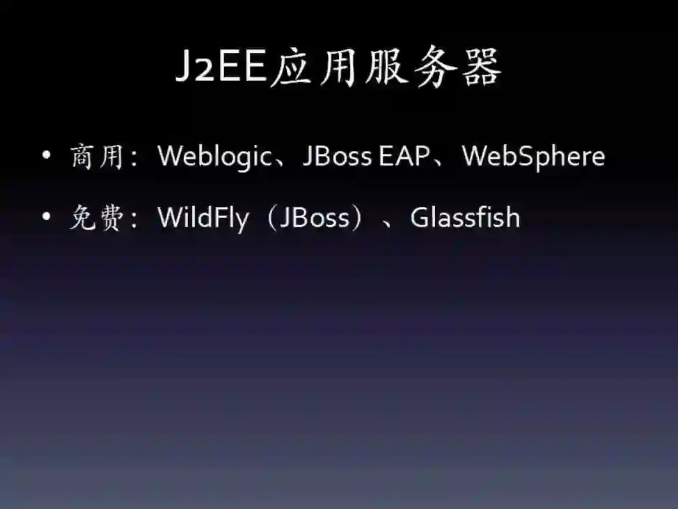 免费的诸如JBOSS,使用也非常广泛,作为商用企业级应用服务器的减配版。
