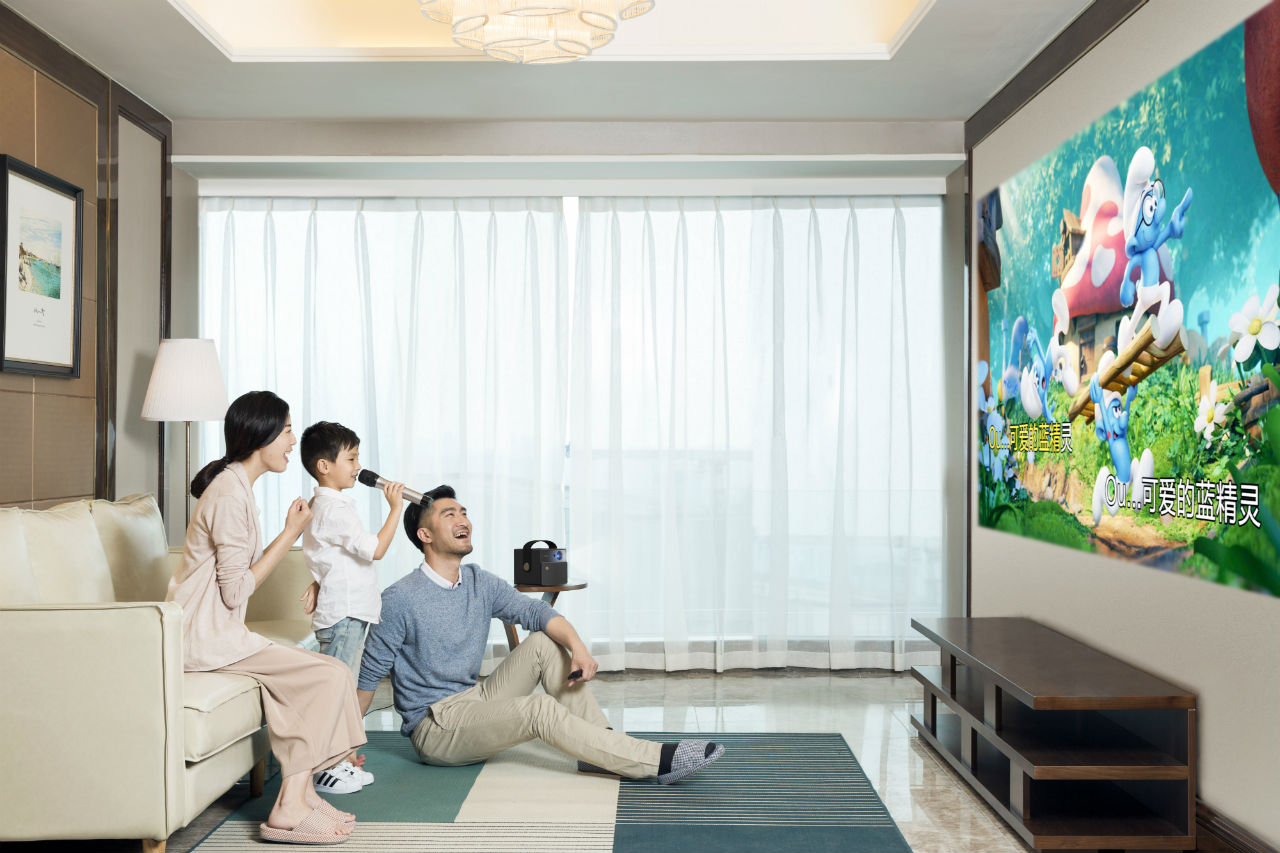 即使侧投,也能迅速调节出方正画面,白墙秒变大屏幕。