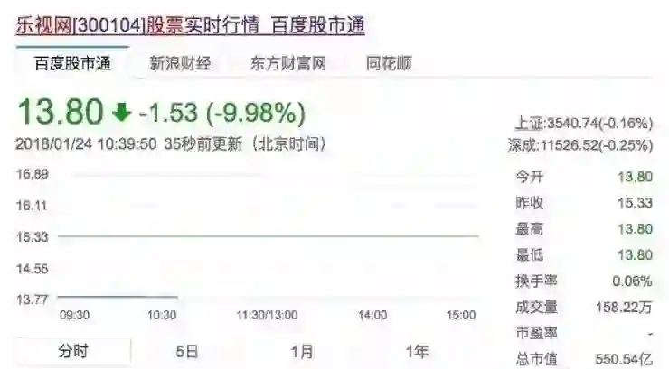 乐视网时隔9月复牌:瞬间跌停