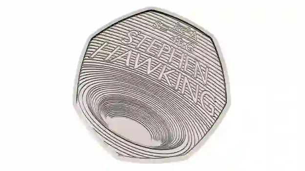0、印有霍金与黑洞主题图案的 50 便士纪念币正式发售