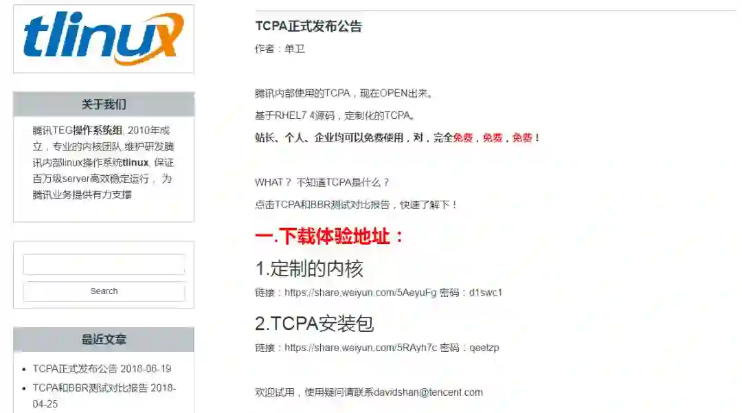 腾讯内核团队发布了一个名为 TCPA 的项目,官方表示这原是腾讯内部使用的产品,现在正式“OPEN”出来,个人、站长和企业均可以免费使用。
