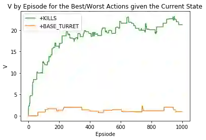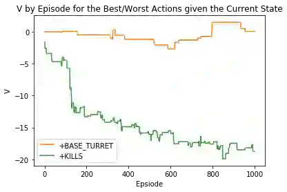 因此,我们对人头和补兵的奖励都是最小值-0.05,而其它行动的奖励都在-0.05 和 0.05 之间随机生成。