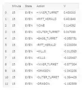 这变得越来越复杂,我不会在此文中展开,但简而言之,我们想为玩家匹配决策,其中下一个最佳决策取决于最新情况。比如,如果一队玩家将对方全部歼灭,他们可能会去拿大龙。我们的模型已经将一个序列中事件发生的概率考虑在内,因此,我们也应该用同样的方式思考玩家的决策。这一想法来自一篇论文《DJ-MC: A Reinforcement-Learning Agent for Music Playlist Recommendation》,该论文阐释了如何更加详细地将反馈映射出来。