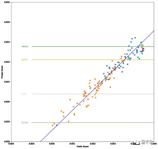 横轴是Public LB Score, 纵轴是Private LB Score。