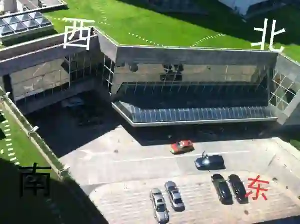 因为我们是北半球,所以影子肯定不会出现在本体的南边,而建筑物面积最大的侧面一般又是向阳的,所以我们可以知道这幅图的东西南北。