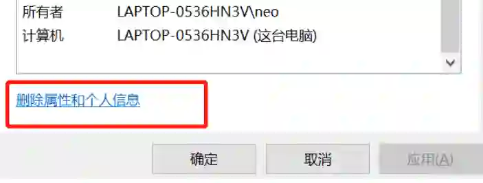 在电脑端删除属性和个人信息。电脑端右键-属性-详细信息,滚动条拉动到最下方的时候,会看到“删除属性和个人”信息的蓝色字样。