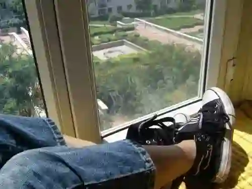 然后再根据照片中窗子露出的柱子,以及向下看的角度大概可以推断出女孩住在几楼。