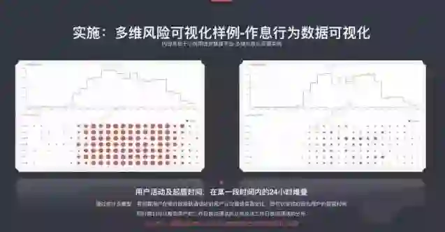 风险专家往往不具备去做大量单体统计的事情的精力,这个时候需要我们从“时间、空间、对象、行为”维度组合上对客户的数据进行可视化认知,如: