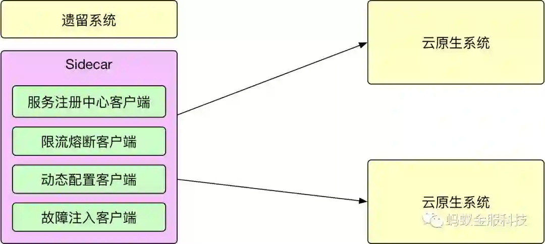 另外的一个问题其实是所有在往云原生架构中转型的公司都会遇到的问题,云原生看起来非常美好,但是我们怎么渐进式的演进到云原生的架构下?特别是对于遗留系统,到底怎么做比较好。当然,一种简单粗暴的方式就是直接用云原生的设施和架构重新写一套,但是这样,投入的成本就非常高,而且重写就意味着可能会引入 Bug,导致线上的稳定性的问题。那么有没有一种方式可以让这些遗留系统非常便捷地享受到云原生带来的好处呢?Service Mesh 其实为我们指明了一个方向,通过 Service Mesh,我们为遗留系统安上一个 Sidecar,少量地修改遗留系统的配置甚至不用修改遗留系统的配置就可以让遗留系统享受到服务发现,限流熔断,故障注入等等能力。