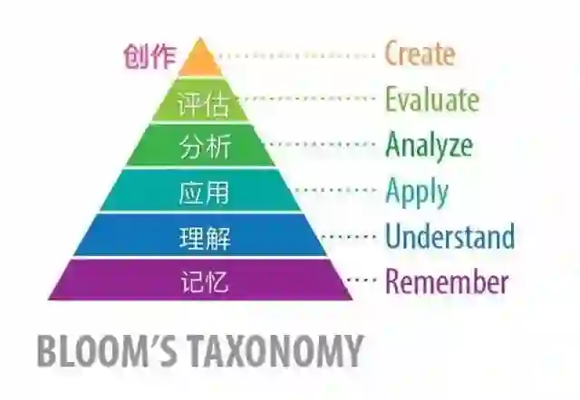什么是高级思维能力呢?先来说说思维能力金字塔 ( Bloom’s Taxonomy ),这是美国著名教育学家Benjamin Bloom提出的理论,这种可量化的人类认知层级的提出,一直指导教育界的不断进步。至今仍然是世界顶级大学教师培训的必修内容。